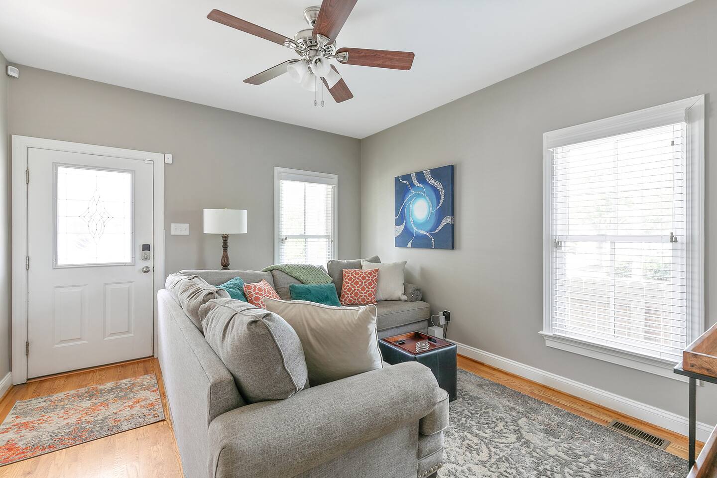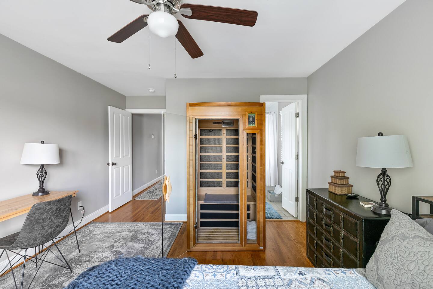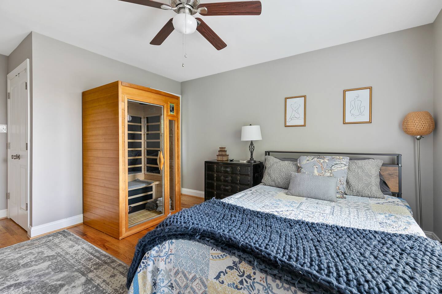 🛋 Living Room ✔️Comfy L-shaped sectional couch ✔️Smart TV for streaming your favorites ✔️Front windows bring in great natural light 🍽 Kitchen & Dining ✔️Full kitchen with modern appliances ✔️Open layout with dining table for 6 ✔️Keurig coffee maker, toaster oven & cookware ✔️Half bath located just off the kitchen 🛏️ Bedrooms (Upstairs) - Spacious & Comfy 🌝 Primary Bedroom ✔️King bed ✔️Full ensuite bath ✔️Large Desk for remote work 🌝 Second Bedroom ✔️Queen bed ✔️Full ensuite bath ✔️Desk for remote work ✔️ Infrared Sauna ⭐️ Both rooms offer closet space and are located on opposite ends of the house for privacy 🛁 Bathrooms ✔️2 full, private ensuite bathrooms upstairs ✔️1 convenient half bathroom on the main floor 🧺 Extras & Amenities ✔️Stackable washer & dryer upstairs ✔️High-speed Wi-Fi—perfect for remote work ✔️Covered front and back porches ✔️Fenced-in backyard ✔️Free street parking 🌆 Location, Location, Location! Located in Richmond’s historic North Church Hill neighborhood, you’re just a short walk or drive from some of the city's best restaurants, parks, and cafes. Whether you're in town for work, family, or just fun, you'll have easy access to: 🍽 Dining & Drinks: Soul N’ Vinegar, Kahlos Tequeria, Union Market, The Roosevelt, Fat Rabbit 🌳 Parks & Views: Libby Hill Park, Chimborazo Park 🛒 Essentials: The Market at 25th grocery store