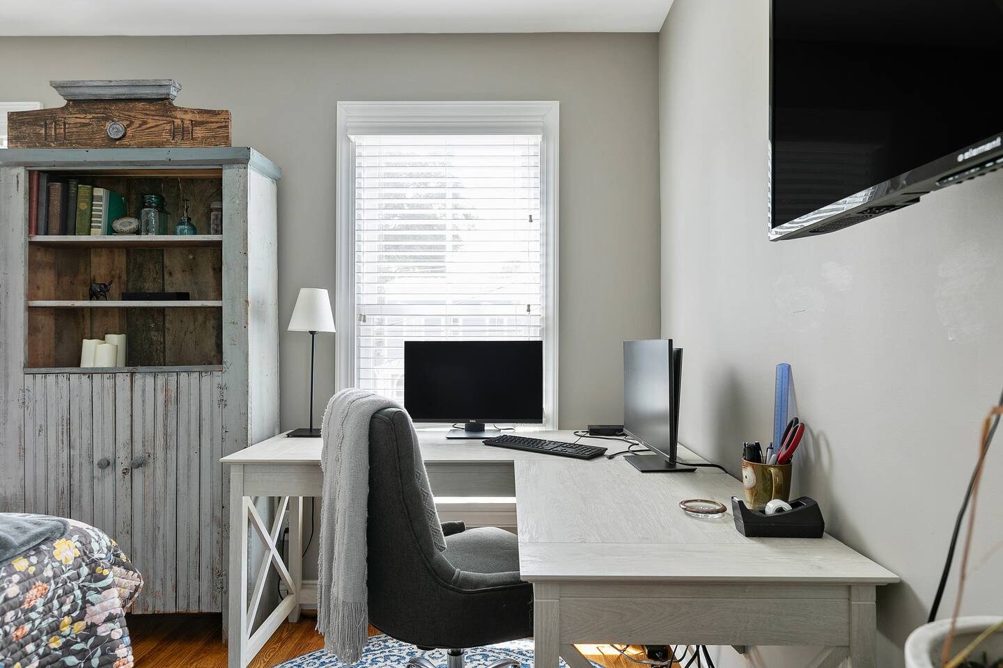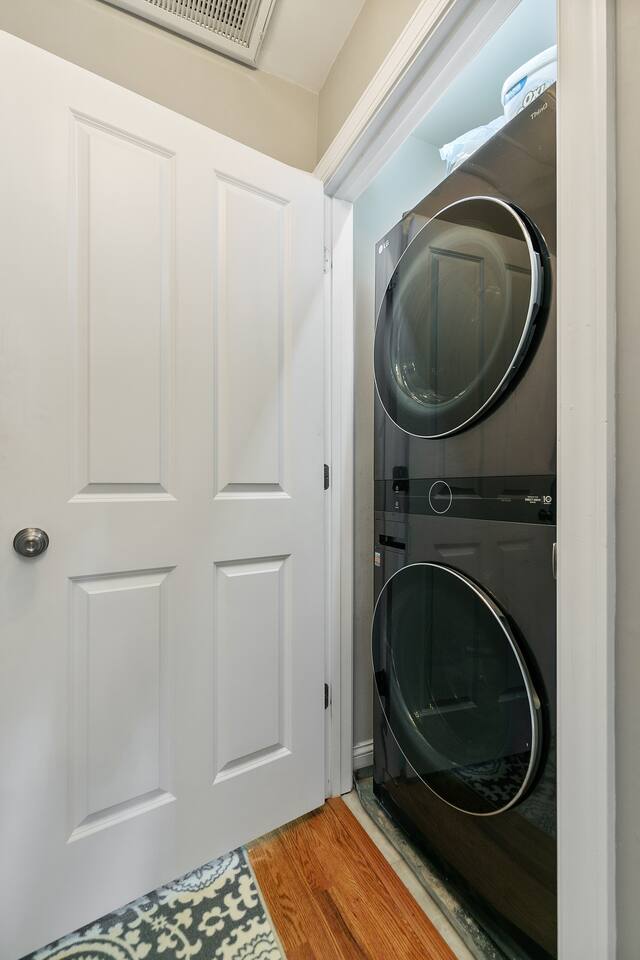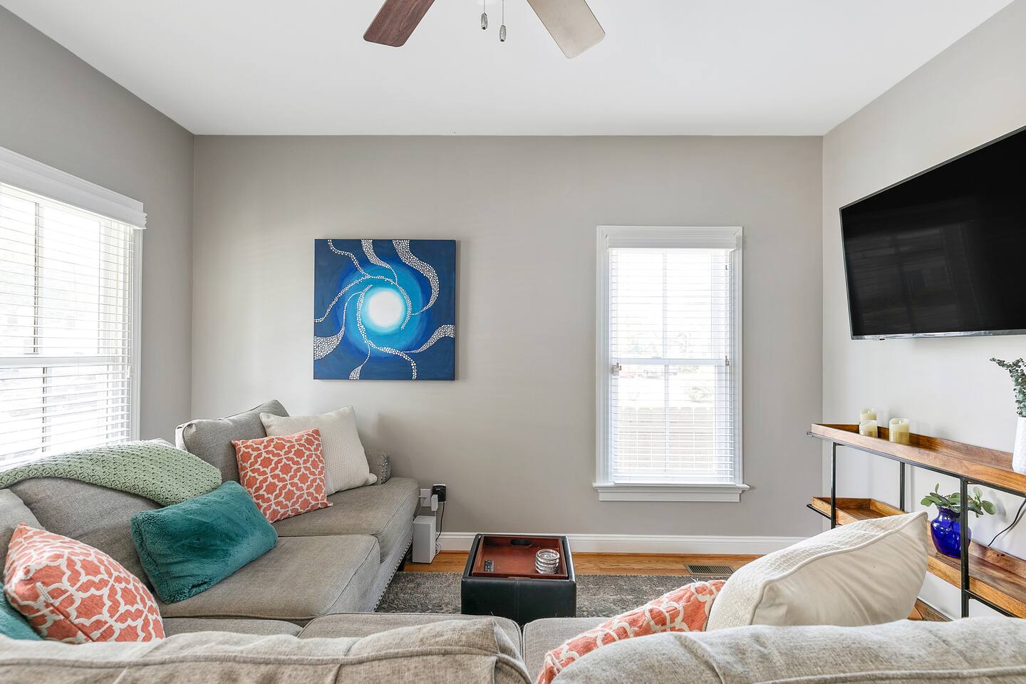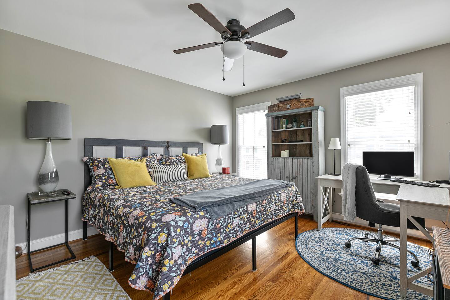 🛋 Living Room ✔️Comfy L-shaped sectional couch ✔️Smart TV for streaming your favorites ✔️Front windows bring in great natural light 🍽 Kitchen & Dining ✔️Full kitchen with modern appliances ✔️Open layout with dining table for 6 ✔️Keurig coffee maker, toaster oven & cookware ✔️Half bath located just off the kitchen 🛏️ Bedrooms (Upstairs) - Spacious & Comfy 🌝 Primary Bedroom ✔️King bed ✔️Full ensuite bath ✔️Large Desk for remote work 🌝 Second Bedroom ✔️Queen bed ✔️Full ensuite bath ✔️Desk for remote work ✔️ Infrared Sauna ⭐️ Both rooms offer closet space and are located on opposite ends of the house for privacy 🛁 Bathrooms ✔️2 full, private ensuite bathrooms upstairs ✔️1 convenient half bathroom on the main floor 🧺 Extras & Amenities ✔️Stackable washer & dryer upstairs ✔️High-speed Wi-Fi—perfect for remote work ✔️Covered front and back porches ✔️Fenced-in backyard ✔️Free street parking 🌆 Location, Location, Location! Located in Richmond’s historic North Church Hill neighborhood, you’re just a short walk or drive from some of the city's best restaurants, parks, and cafes. Whether you're in town for work, family, or just fun, you'll have easy access to: 🍽 Dining & Drinks: Soul N’ Vinegar, Kahlos Tequeria, Union Market, The Roosevelt, Fat Rabbit 🌳 Parks & Views: Libby Hill Park, Chimborazo Park 🛒 Essentials: The Market at 25th grocery store